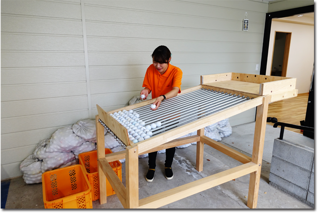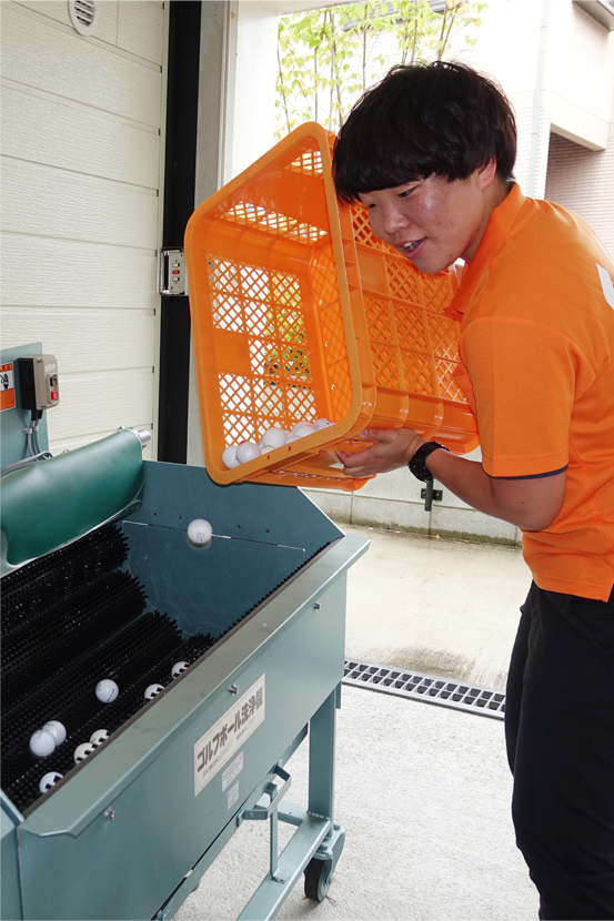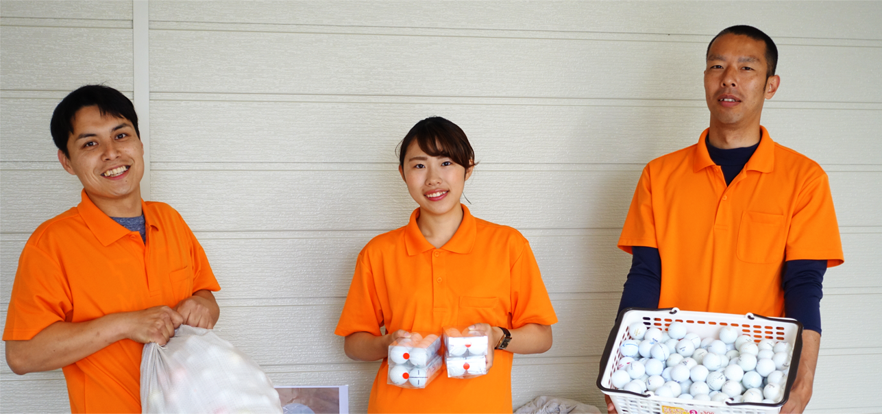 ゴルフ場から、池や林に入ったロストボールを回収し、障害者の方々に洗浄、仕分け作業をして頂き梱包、製品化しております。